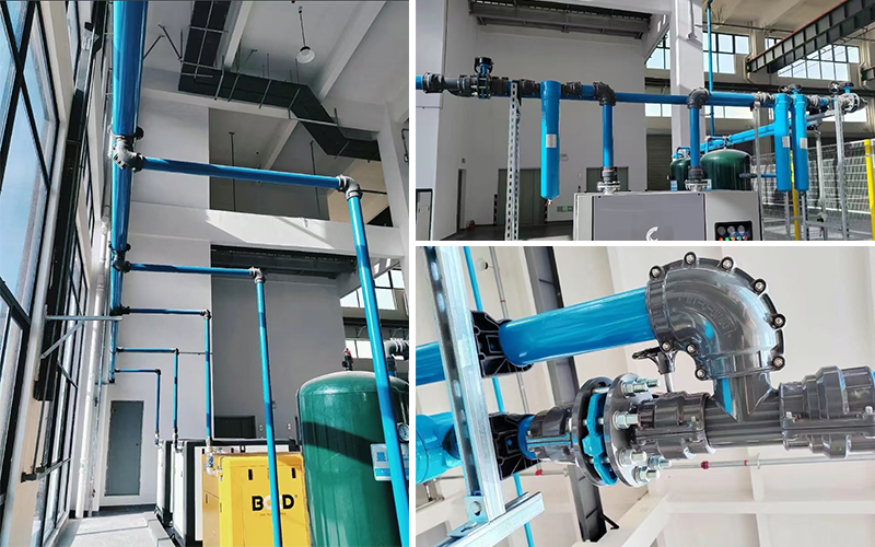 项目描述:该项目采用蓝色铝合金管+黄色铝合金管+灰色铝合金管,主管5100米,支路2600米;配件(连接件/阀门/垫片/密封圈)5600余件。